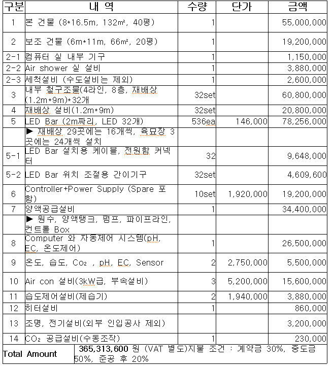 식물공장은 어떻게 지을것인가에 따라 얼마든지 가격 차이가 날 수도 있습니다.