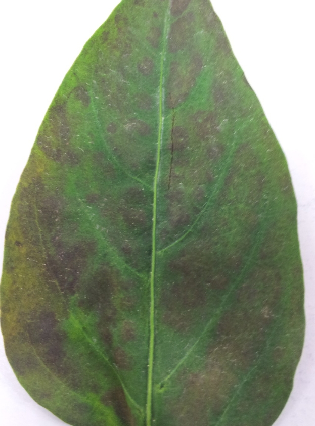 (질문 2) 아래 사진에서 처럼 잎에 점무늬가 있는 것은 어떠한 병인지요?