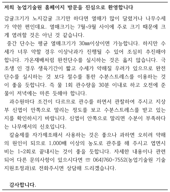 2. 감귤색이 나면 칼슘제를 뿌리는데 가격이 만만치 않아
