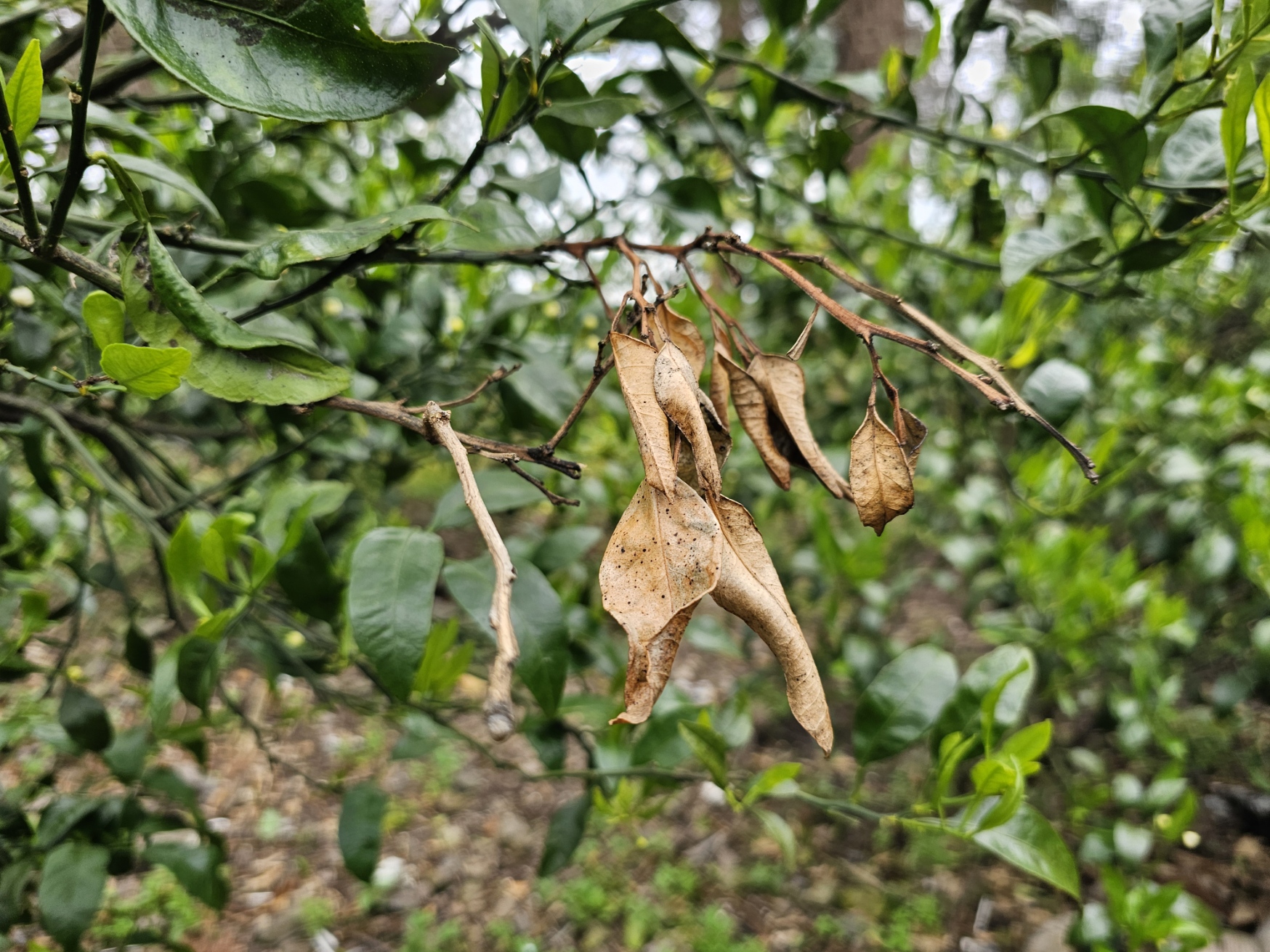 수분이 부족할 경우나 뿌리에 문제가 있을 경우라면 한 가지가 아닌 나무 전체 또는 구역별로 위조될 수 있습니다.