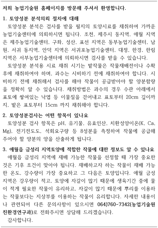 3. 애월읍 금성리1길 20-~30 일대 토양에 적합한 약초/ 식물/ 나무/ 등에 대한 정보도 알수 있나요?