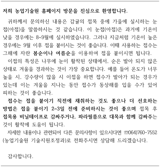 노지 온주에 만감류를 접붙이려고 하는데 8월 하순~9월 상순에 한다는 아접 접목 방법에 대해 안내해주시기 바랍니다.