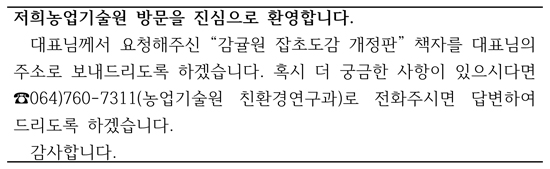 얼마전 인터넷을 검색하다 2011년도에 농업기술원에서 "감귤원 잡초도감 개정판"을 펴내 농가에 보급하였다는 보도자료를 보게 되었습니다.