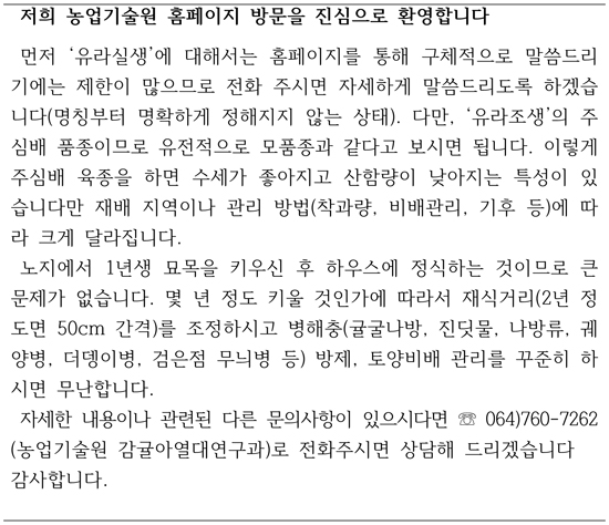 다름아니라 요즘 새로운 신품종으로 떠오르는 유라실생에 대해 문의사항이 있어 글을 남깁니다.