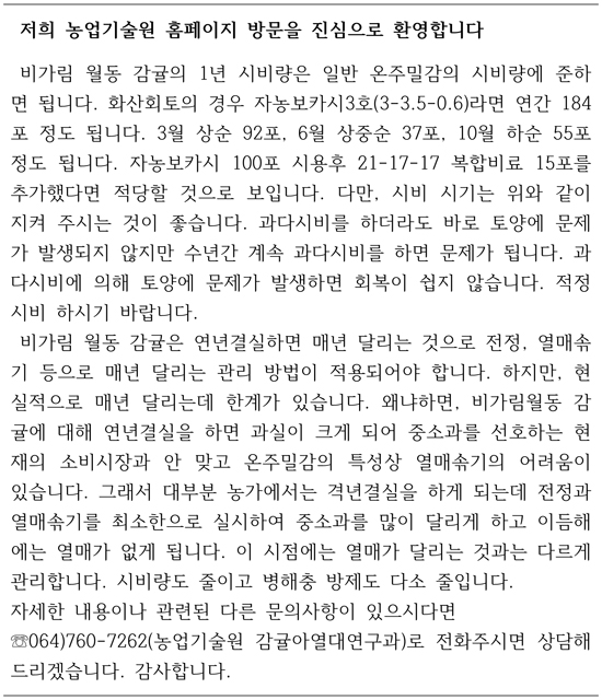 또한 비가림 월동감귤은 격년 결실로 재배하라고 하는데 매년 결실로 재배 하느거랑 격년결실로 재배하는 차이는 무엇인가요?