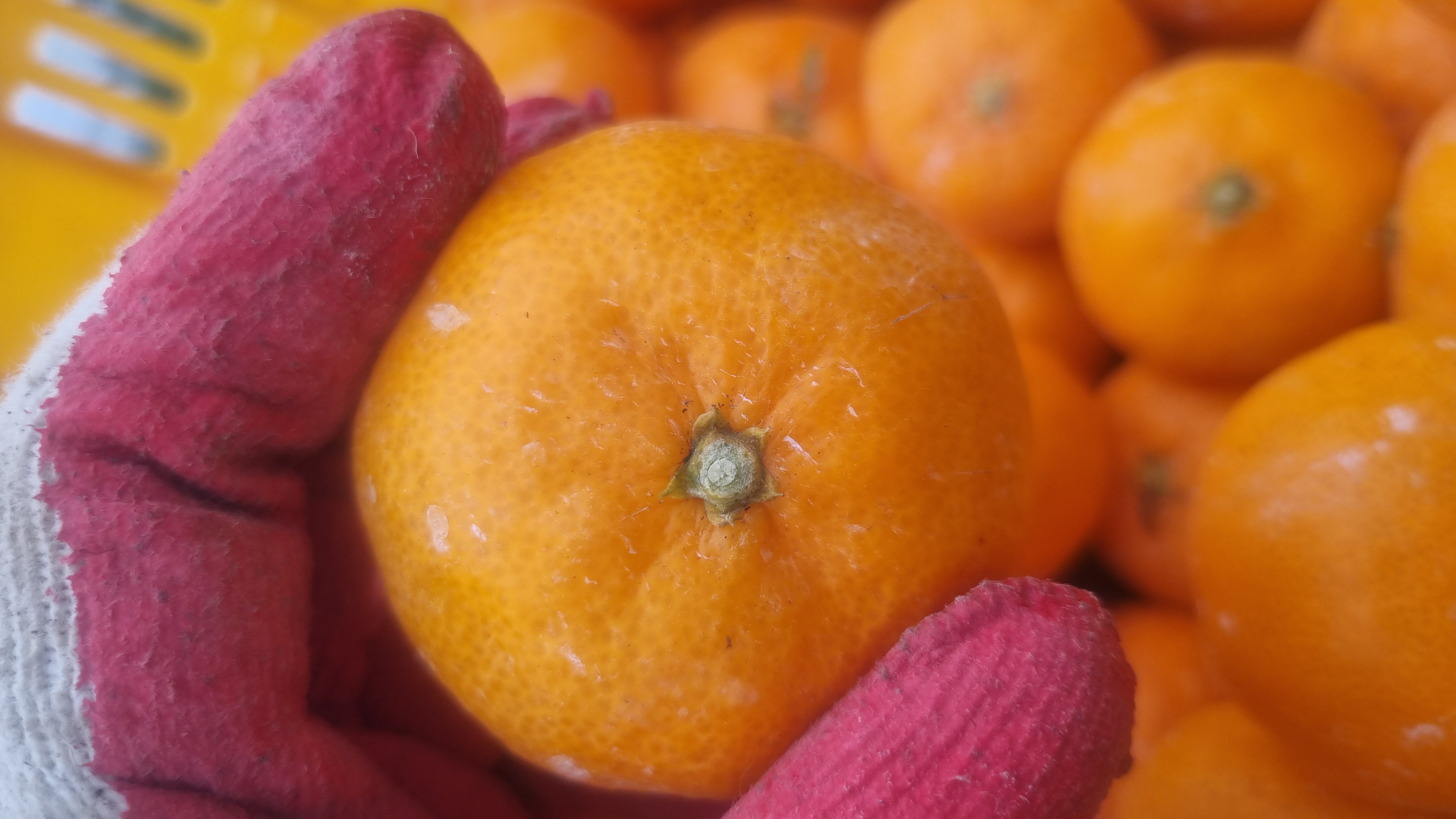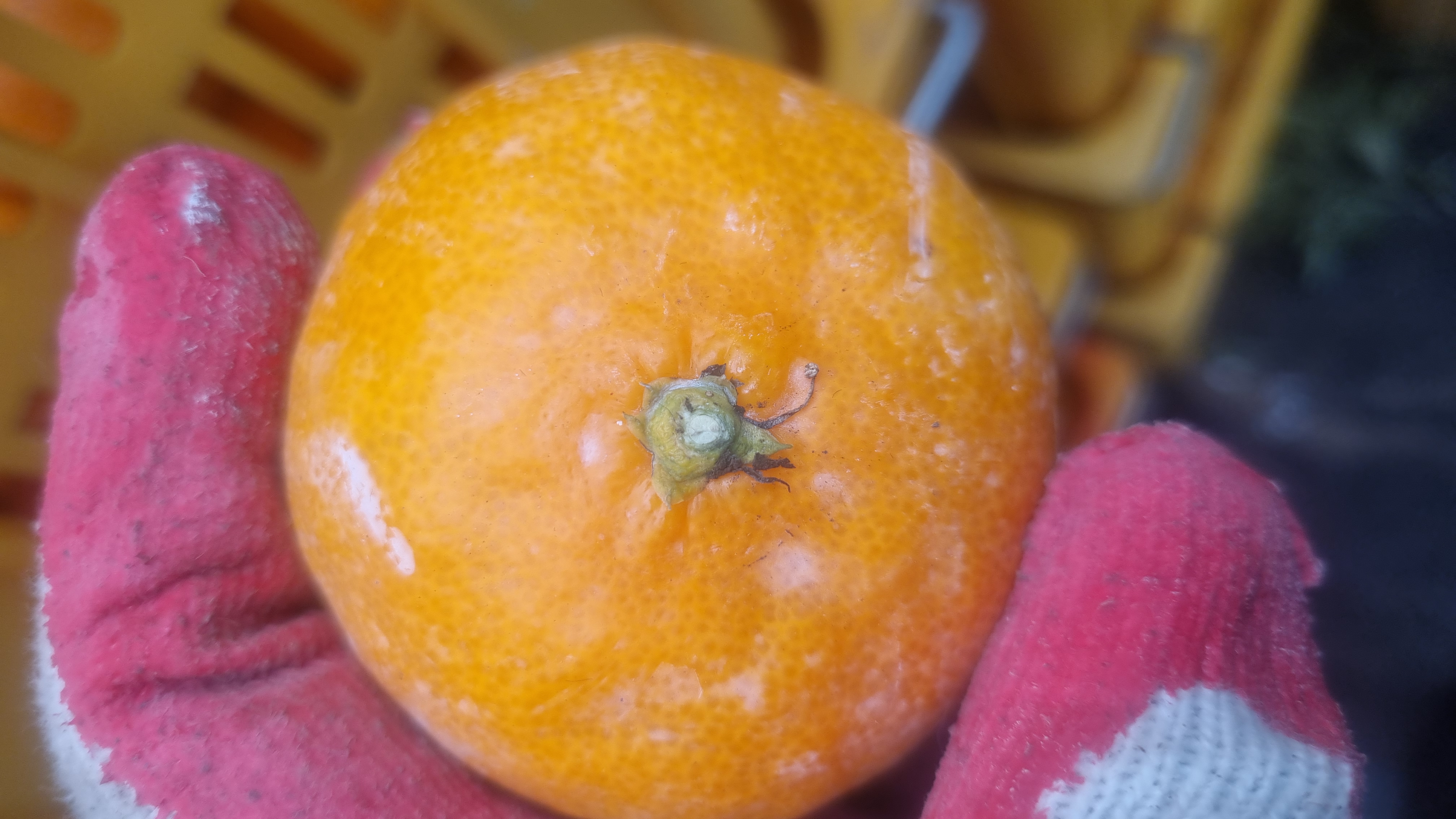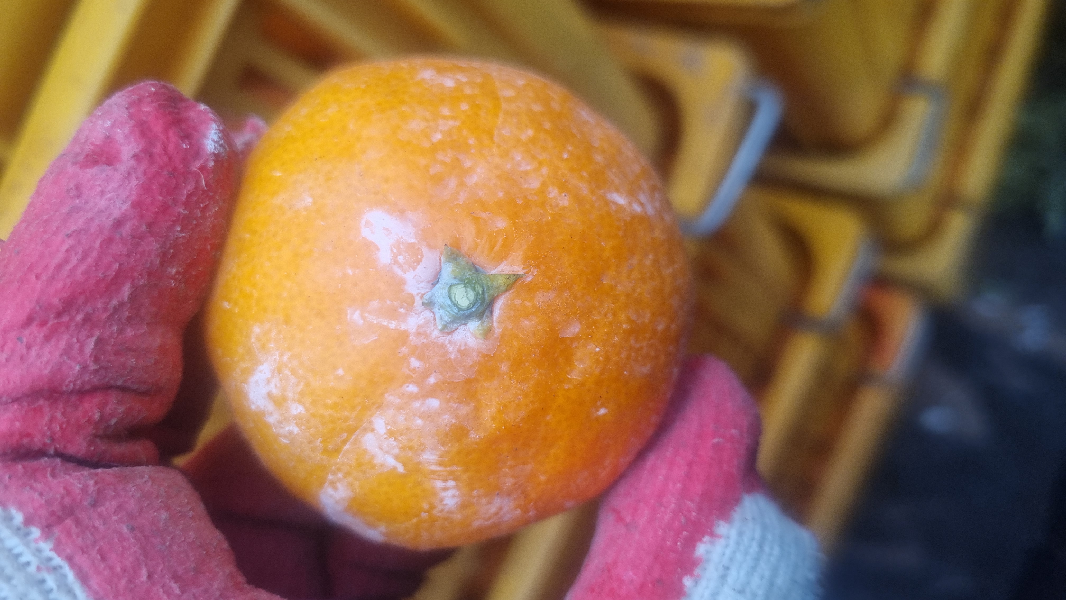 그제 수확한 귤입니다 냉해 피해나 그런건 아닌지요 꼭지만 색이좀 다릅니다