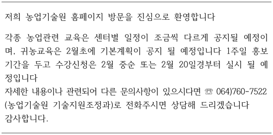 2017년도 각종 농업관련,귀농교육 일정 알려주시면 합니다.