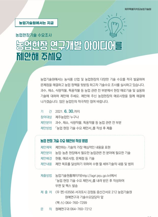 농업기술원에서는 농업현장 기술 수요 조사를 하고 있습니다.