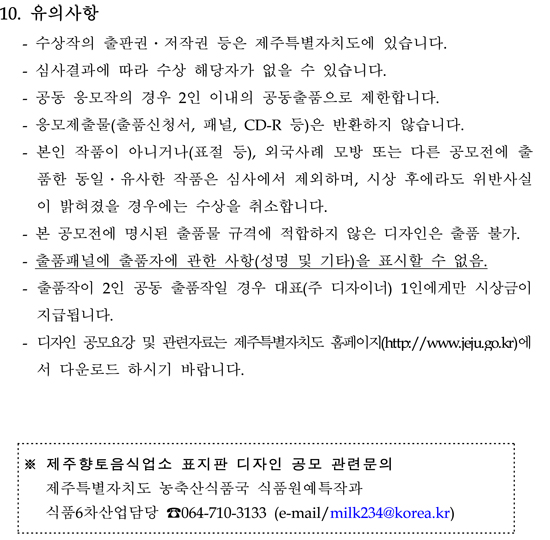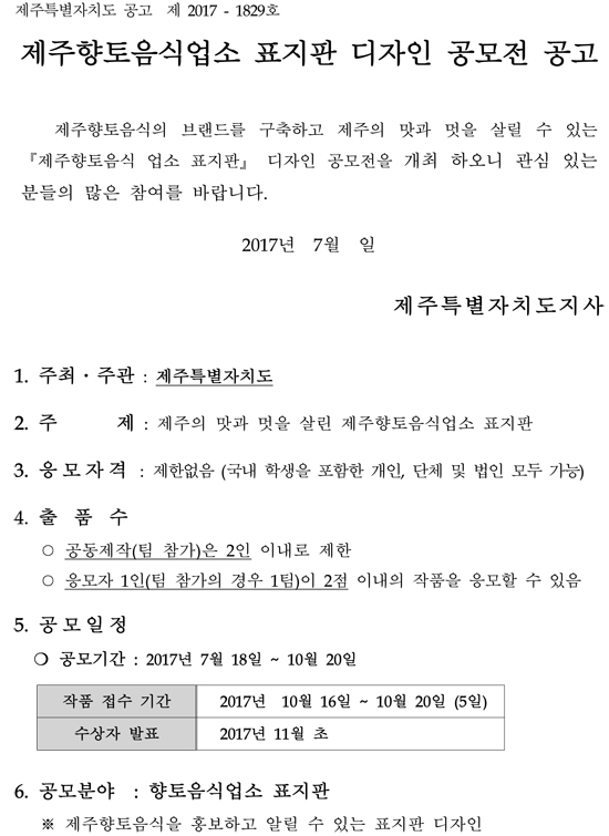 제주향토음식업소 표지판 디자인 공모전 공고