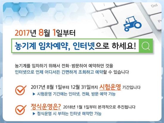 농기계 임차 예약 시험운영 공지