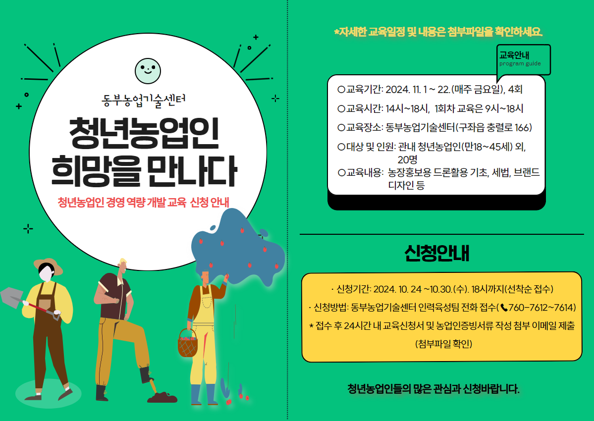 자세한 내용은 "농업인교육 게시판"에서 확인 바랍니다.
