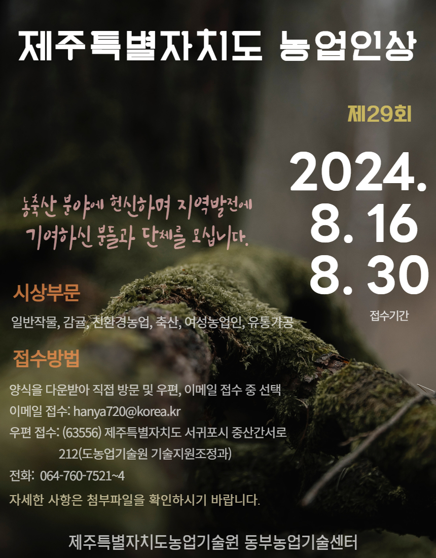 2024년 제주특별자치도 농업인상 수상후보자 추천 공고