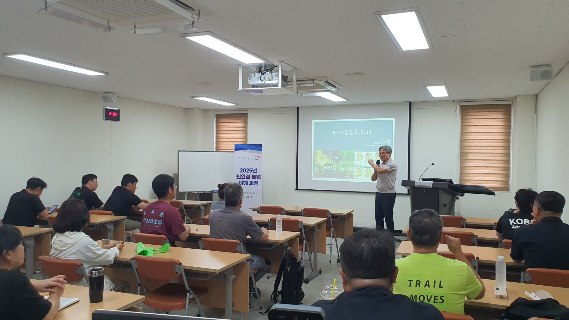 ㅇ내용: 지속가능한 농업과 ESG 경영, 친환경농업을 위한 작물 재배 기술, 친환경농산물 인증제도, 농업분야 탄소중립 정책, 친환경농자재 자가제조 실습