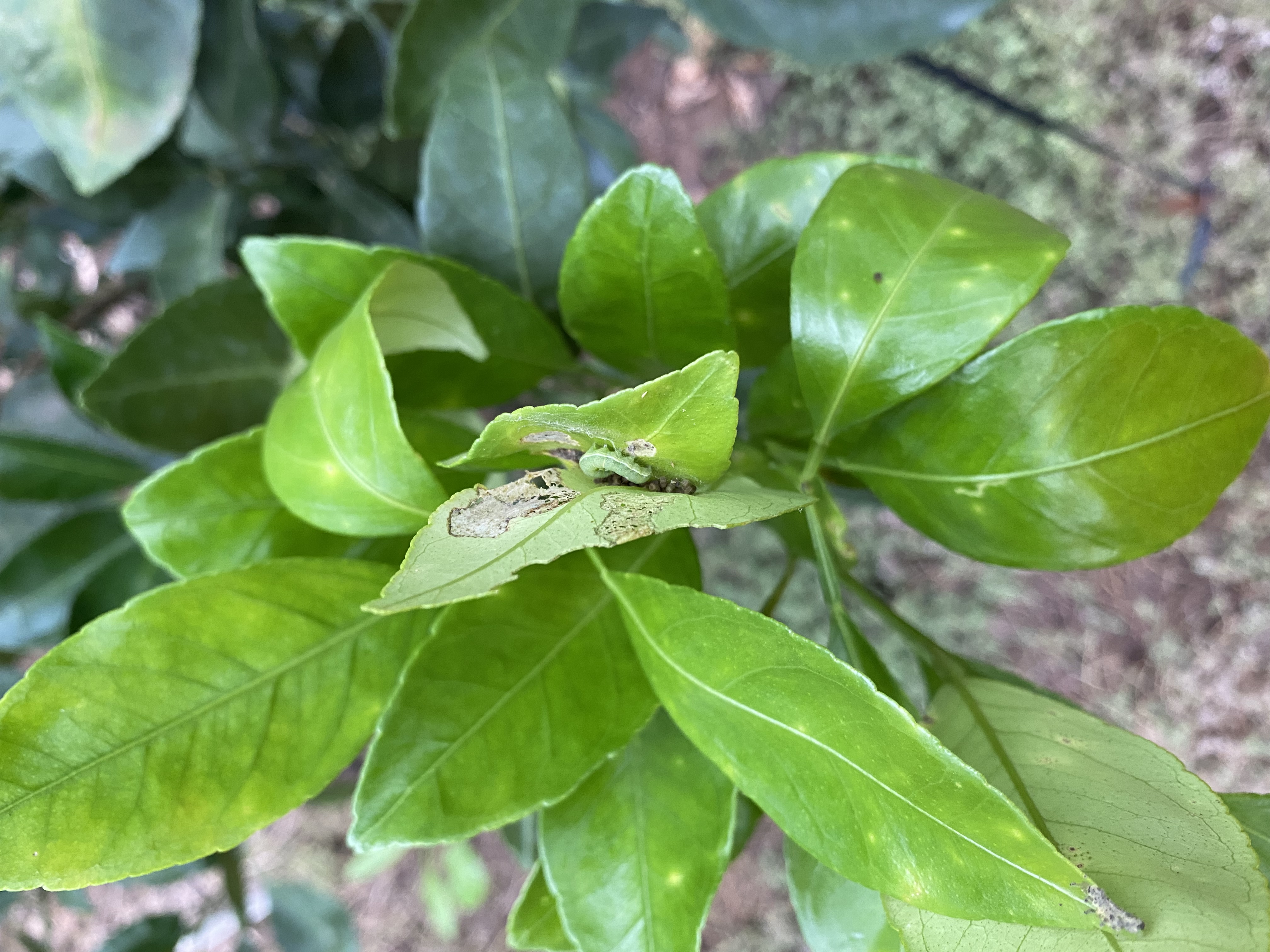 잎과 과실을 가해합니다. 거미줄로 잎을 말거나 잎을 서로 붙인 다음 그 속에서 생활하므로 약제를 살포해도 효과가