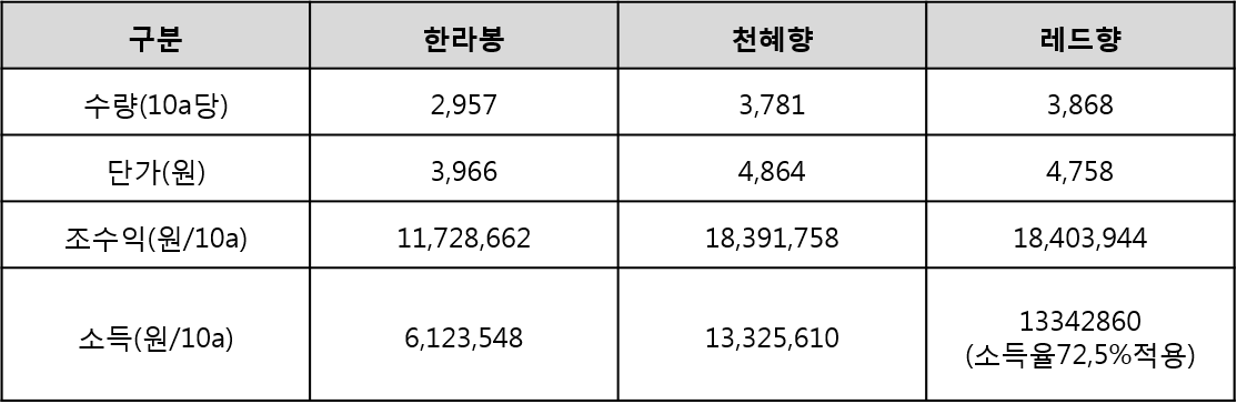 ※ 한라봉, 천혜향 : 2016 지역별농산물소득자료