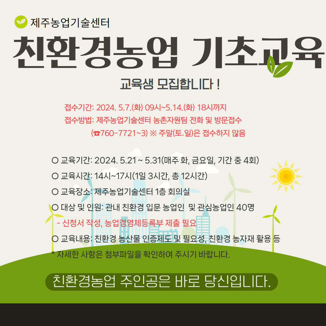 친환경농업 기초교육 신청 알림(교육마감)