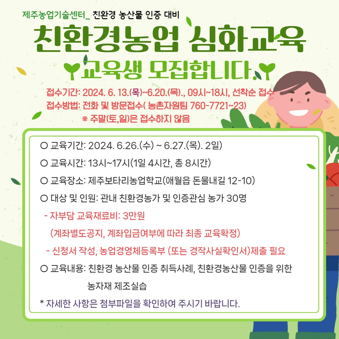 2024 친환경농업 심화교육 운영계획_홍보_homepage.hwp 2024 친환경농업 심화교육 운영계획_홍보_homepage.pdf 2024 친환경농업 심화교육 교육신청서.hwp