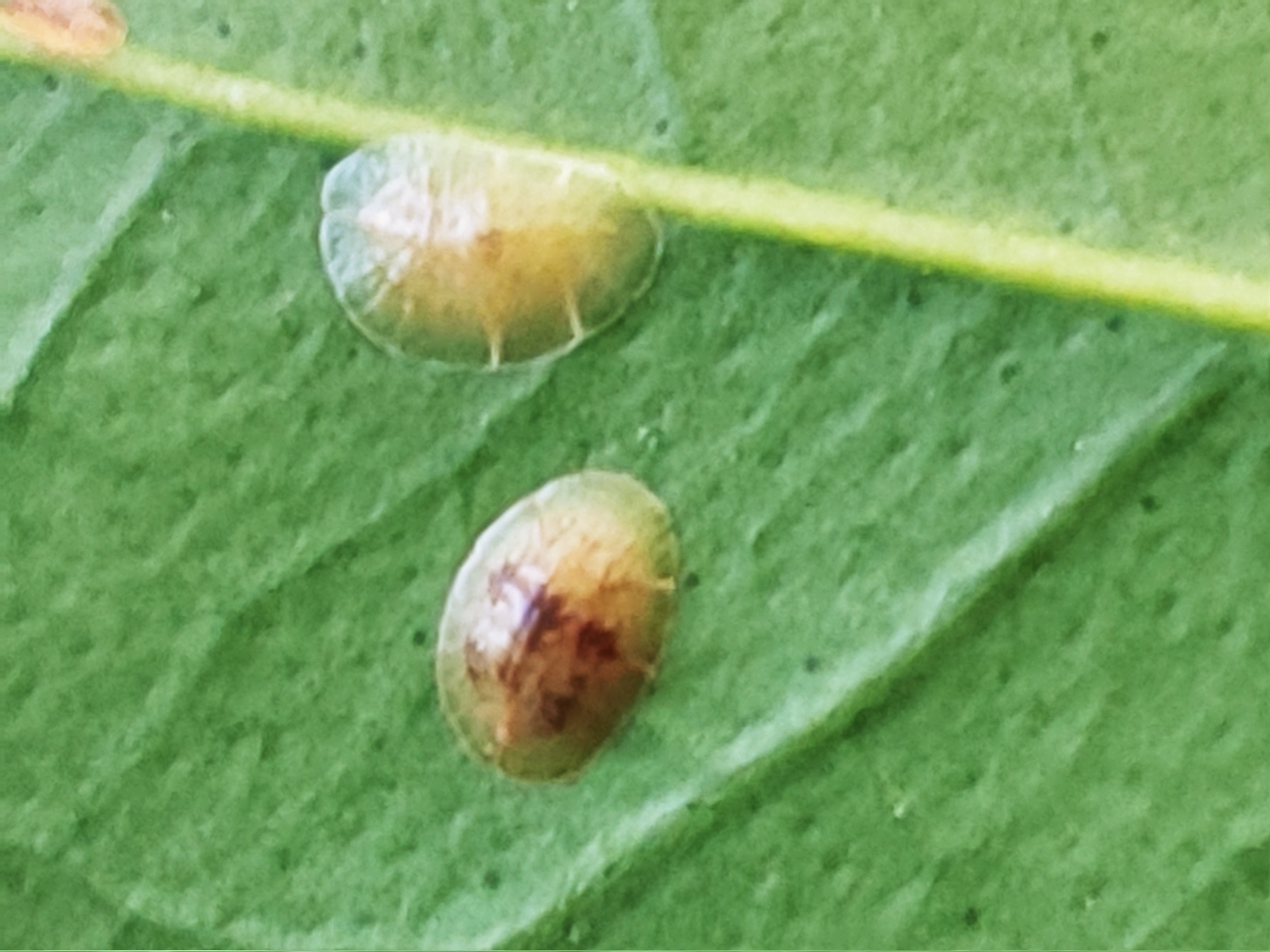 ○ 사진의 해충은 무화과 깍지벌레입니다. 감귤과원에서는 잎과 가지 및 과일에 기생하면서 흡즙하여 가해하며,