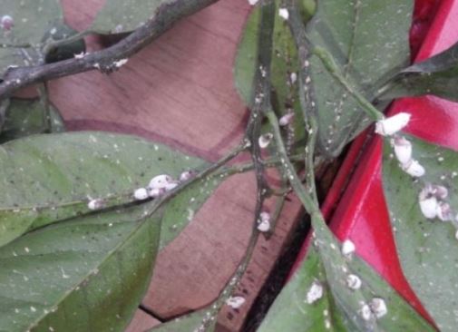 ○ 깍지벌레는 식물의 잎이나 가지에 기생하면서 즙액을 빨아먹고 사는 해충으로 1차적으로 흡즙에 의해 잎이나 줄기가 점차 활력을 잃어가며 식물이 말라죽습니다.