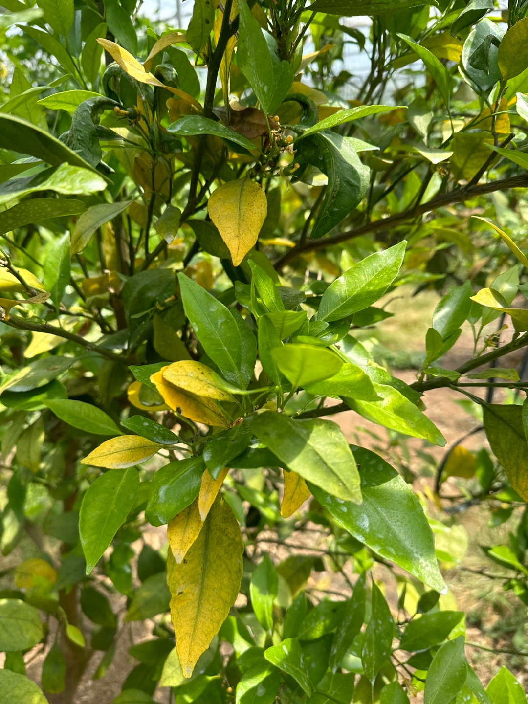 ○ 사진상으로 볼 때 레드향 잎이 노랗게 되는 이유는 뿌리상태가 좋지 않아서 나오는 증상 같습니다.
