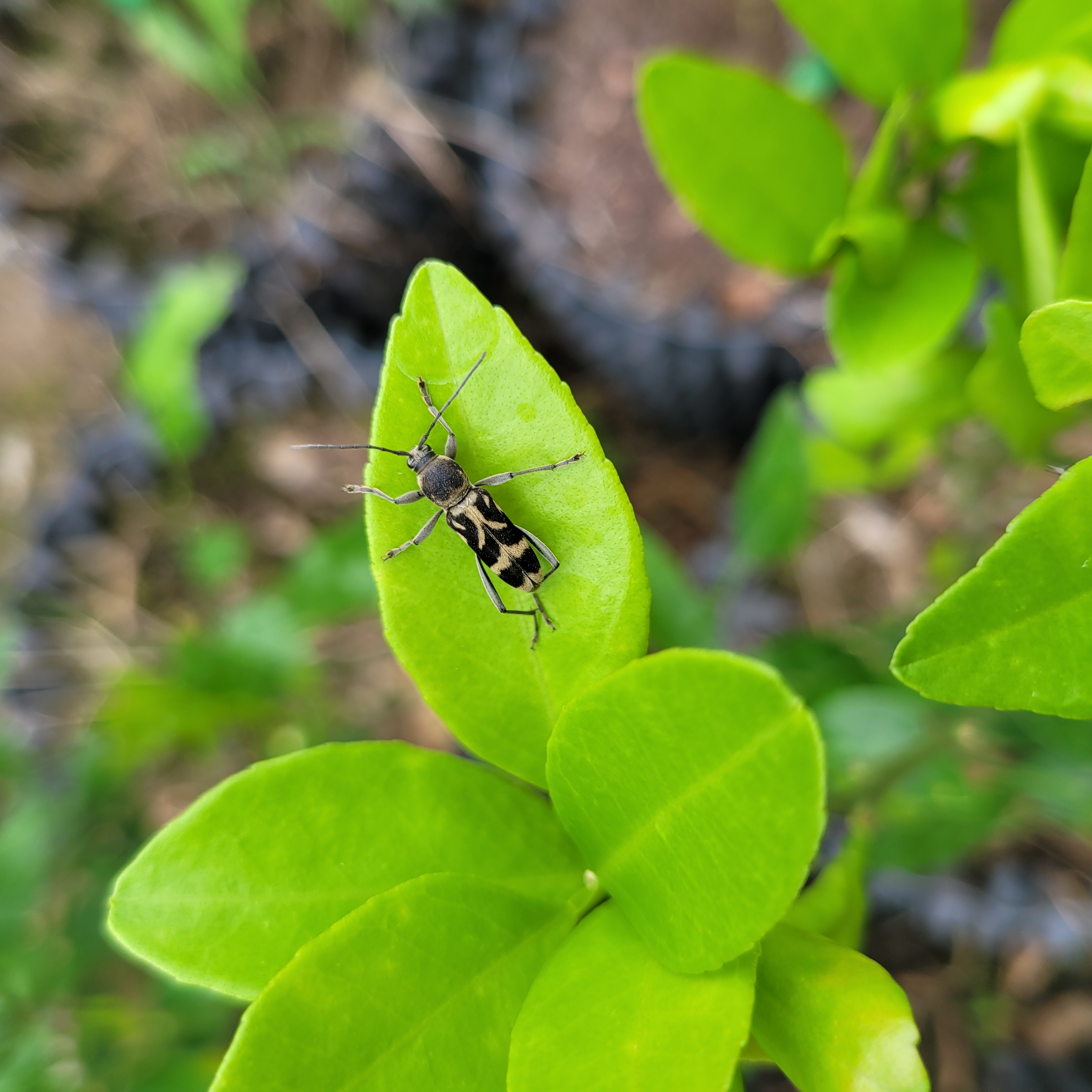 ❍ 제출하신 사진으로는 가시범하늘소로 추정됩니다. 가시범하늘소는 현재까지 보고된 피해 사례는 없습니다.