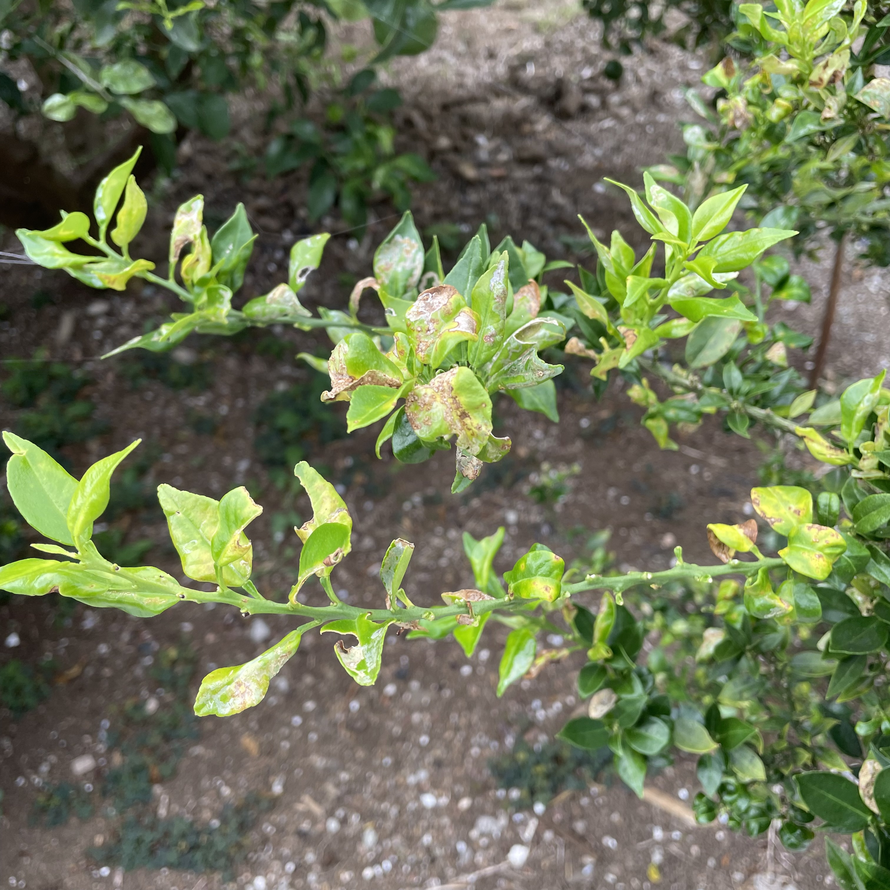 현재 사진상으로도 궤양병 발생이 확인됩니다. 감염된 가지로 10월 20일이 지나면 잘라버리시면 됩니다.
