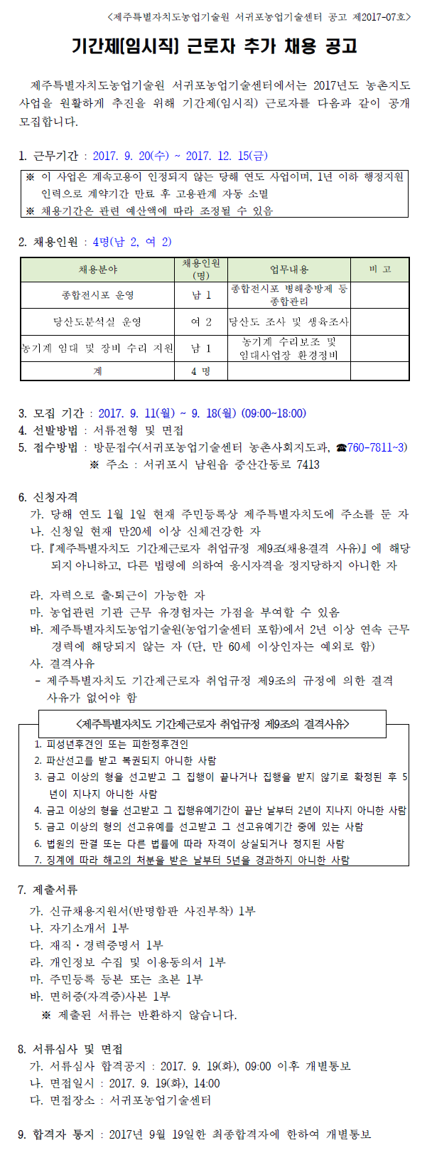 2017년 기간제(임시직)근로자 추가 채용 공고