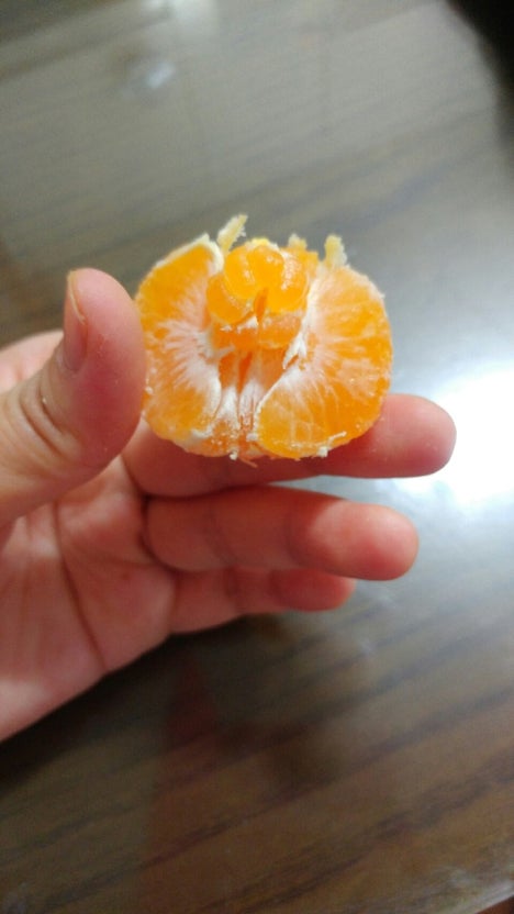 배꼽과(2차과)는 보내주신 사진처럼 재대로된 감귤 형태를 갖추는 것도 있기는 하지만 거의 대부분 먹을 수 없을 정도로 작거나 딱딱한 부분만 존재하게 됩니다. 때문에 이에 대한 영양학적 연구는 없다고 봐야 할 것입니다.