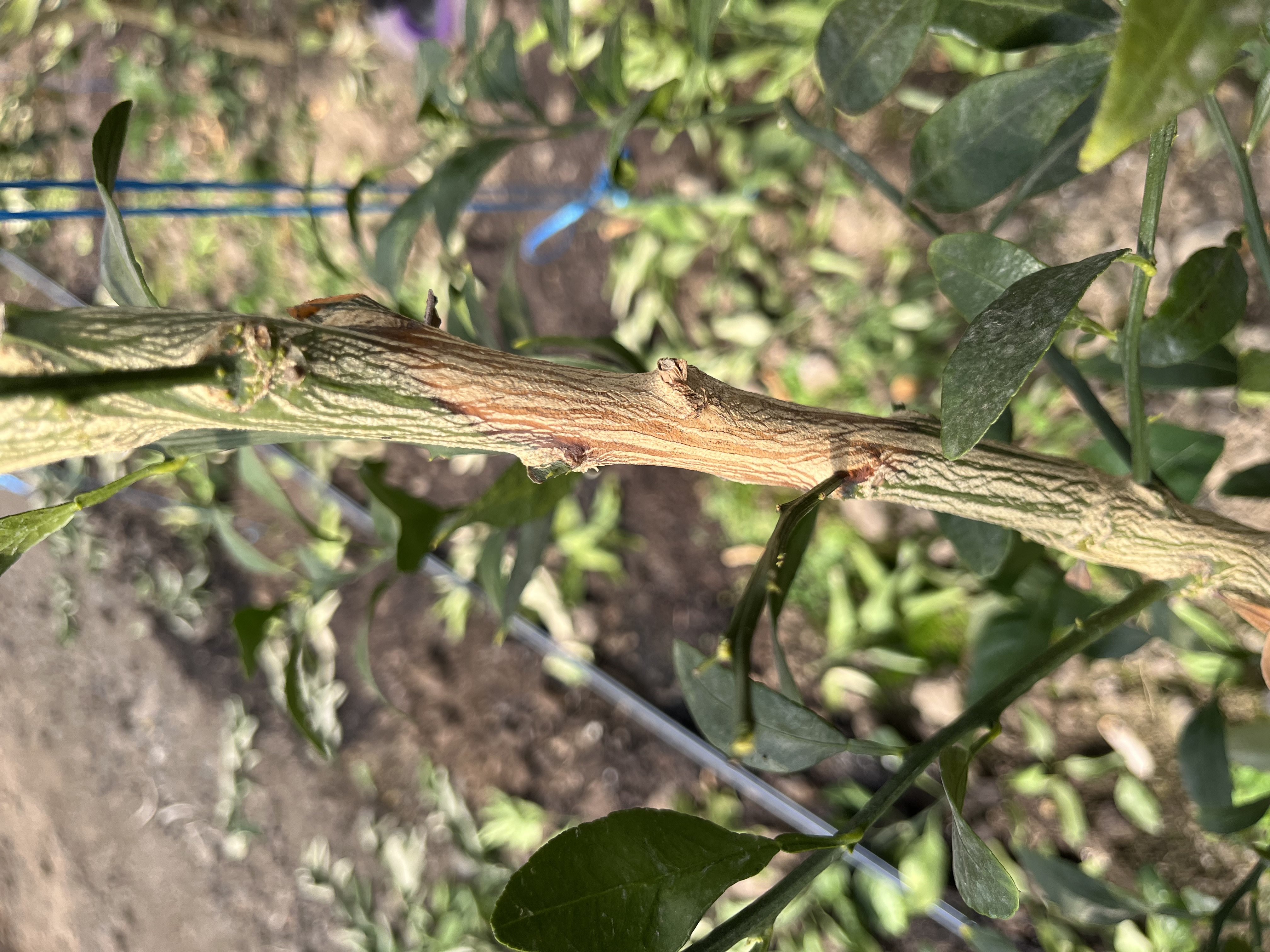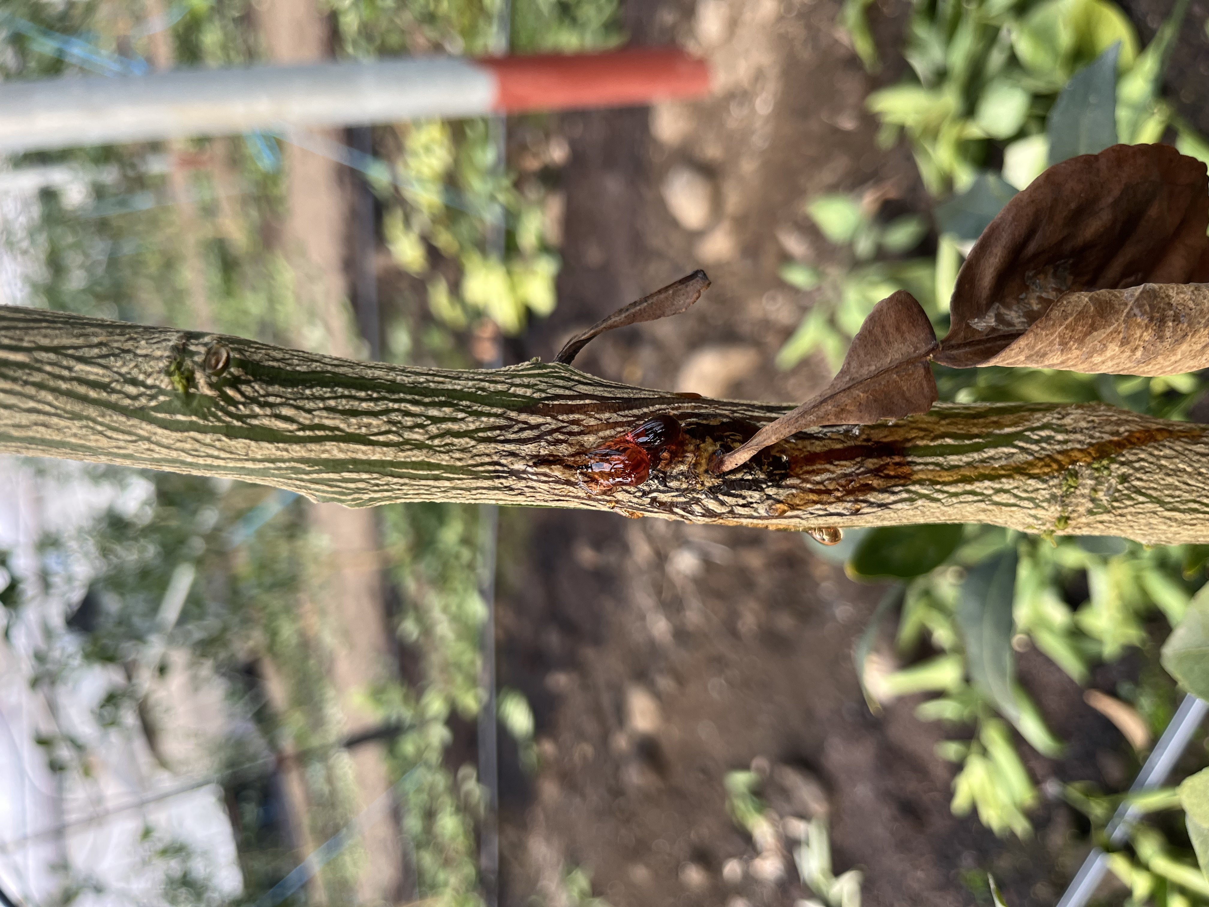 해당 증상 중 진이 나오는 것은 수지병 증상으로 판단되지만, 나무 가지가 갈색으로 변한 것에 대해서는 다양한 원인이 있을 수 있습니다.