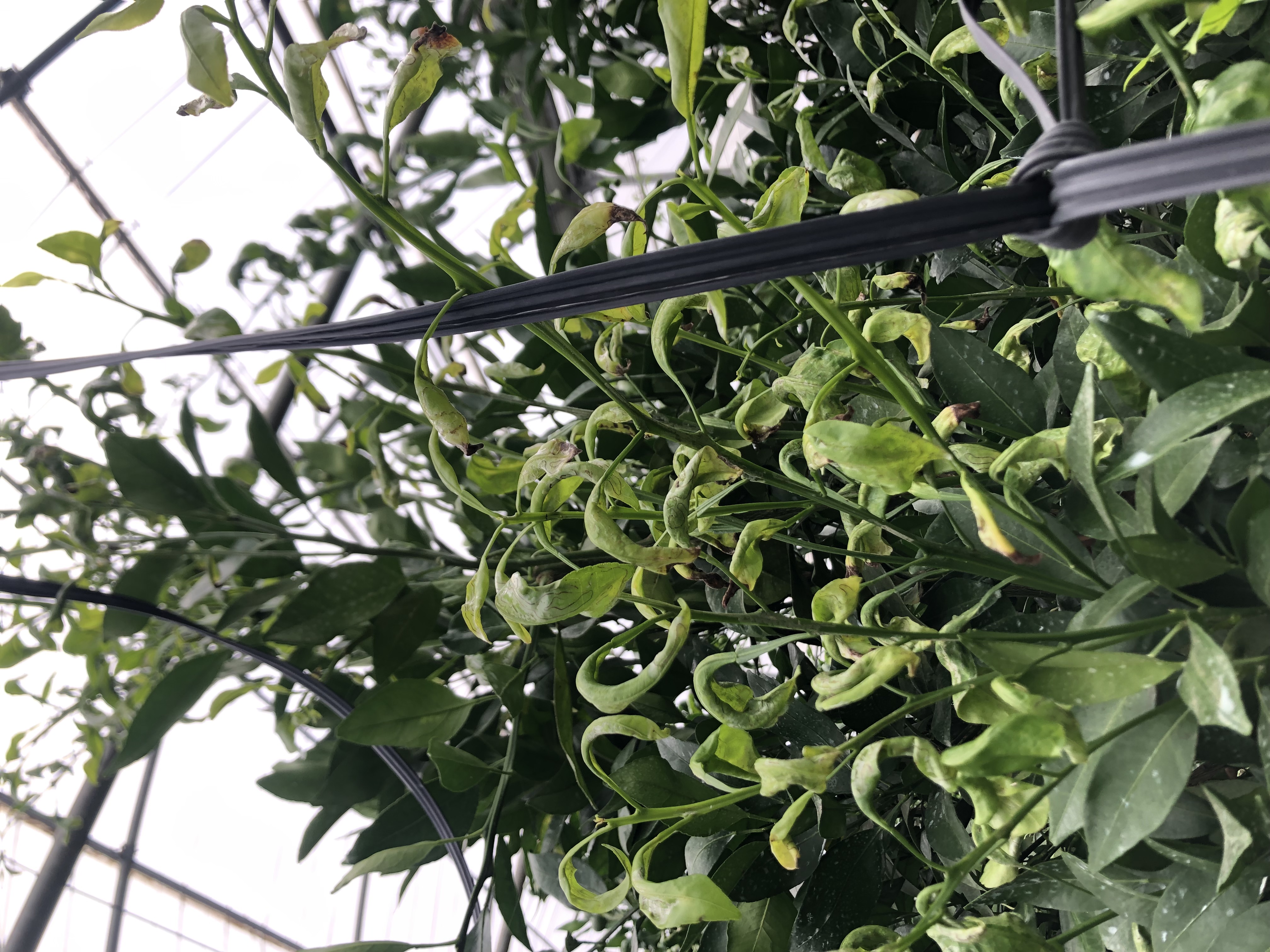 하우스 전체가 새순 상태가 사진처럼 꼬불거리고 갈색이나 노랗게 변했어요