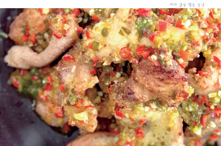감귤파소스 ①대파 1대, 마늘 2톨, 홍고추 1개, 귤껍질 1큰술, 식용유 2큰술