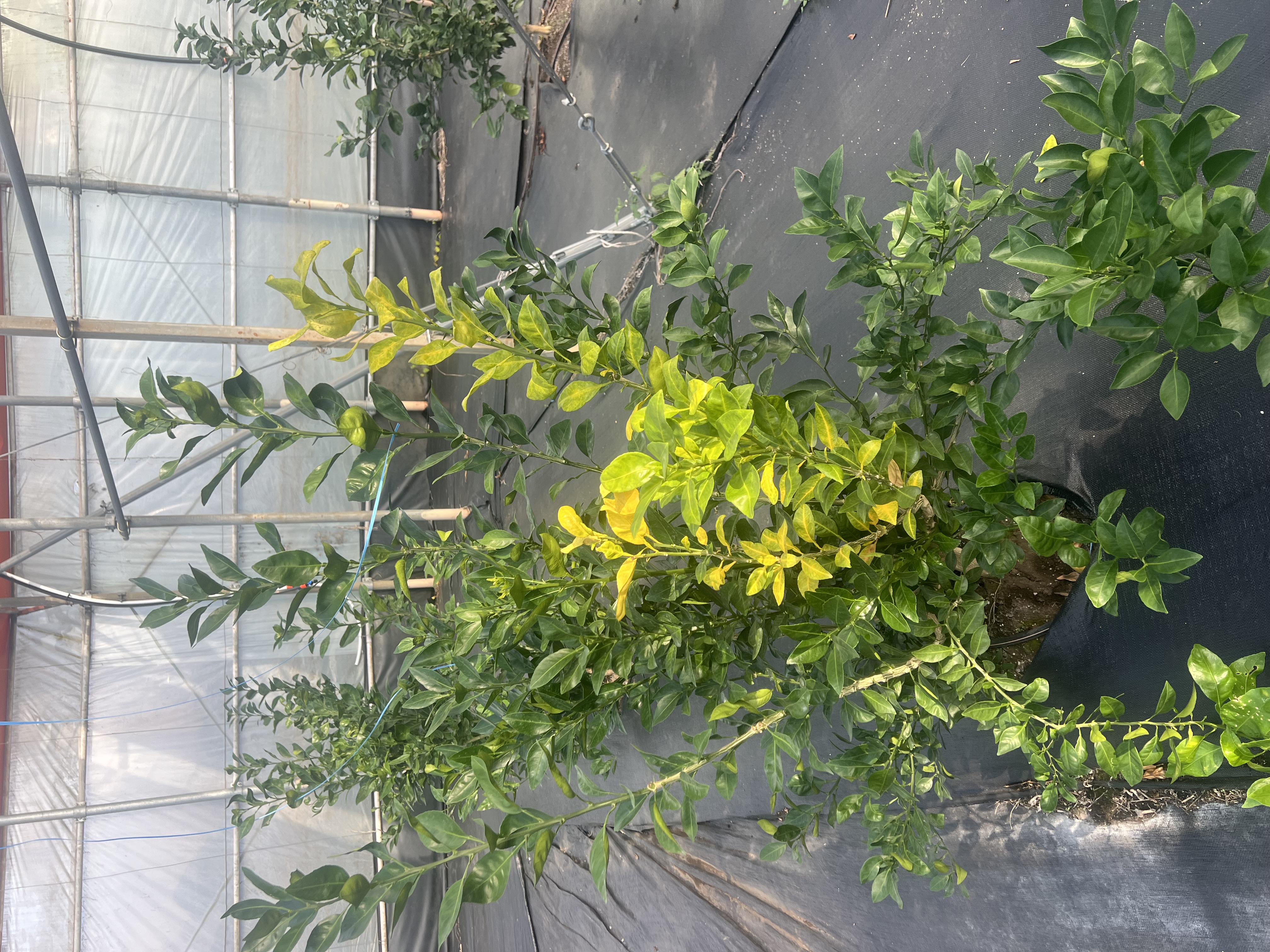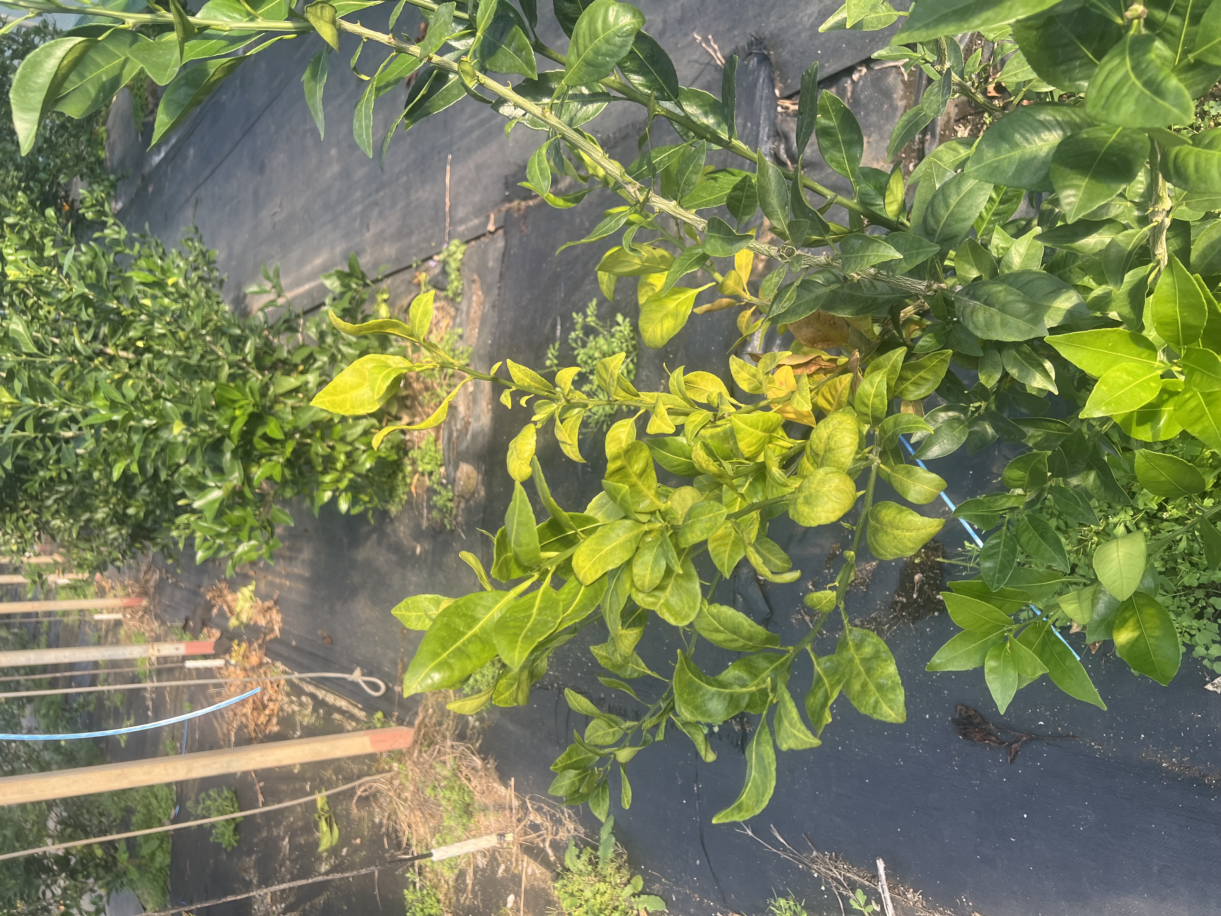 ❍ 질소 결핍증상으로 보입니다. 토양 내 질소 성분이 부족해서 나타나기 보다는 뿌리가 좋지 못하여 질소를 흡수하지 못하기 때문에 결핍증상이 나타나고 있습니다. 요소(40g/20ℓ) 및 질소가 있는 영양제를 7일 간격 3~4회 엽면시비 하기 바랍니다. 또한 과습으로 인한 뿌리호흡 불량으로 뿌리가 좋지 못할 수도 있으니 시기별 증발산량에 따른 물관리를 하기 바랍니다.
